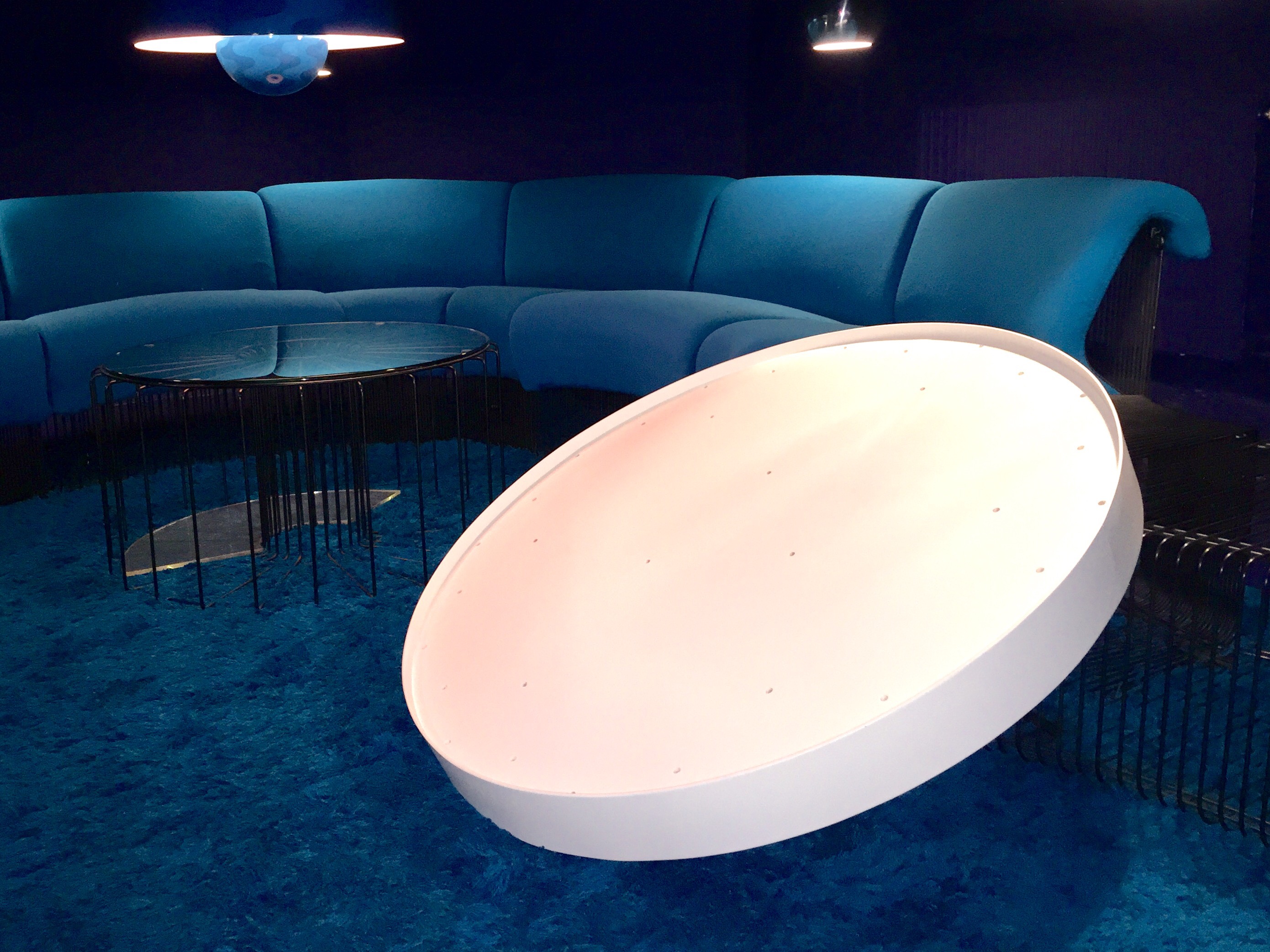 NEXT PROJECT January 10, 2015January 11, 2015 / Panton World The next project will be to make this big lamp ready. This ceiling plate (1 meter in diameter) will be painted in matte purple and 33 chromed Flowerpot lamps will hang from it in a formation.