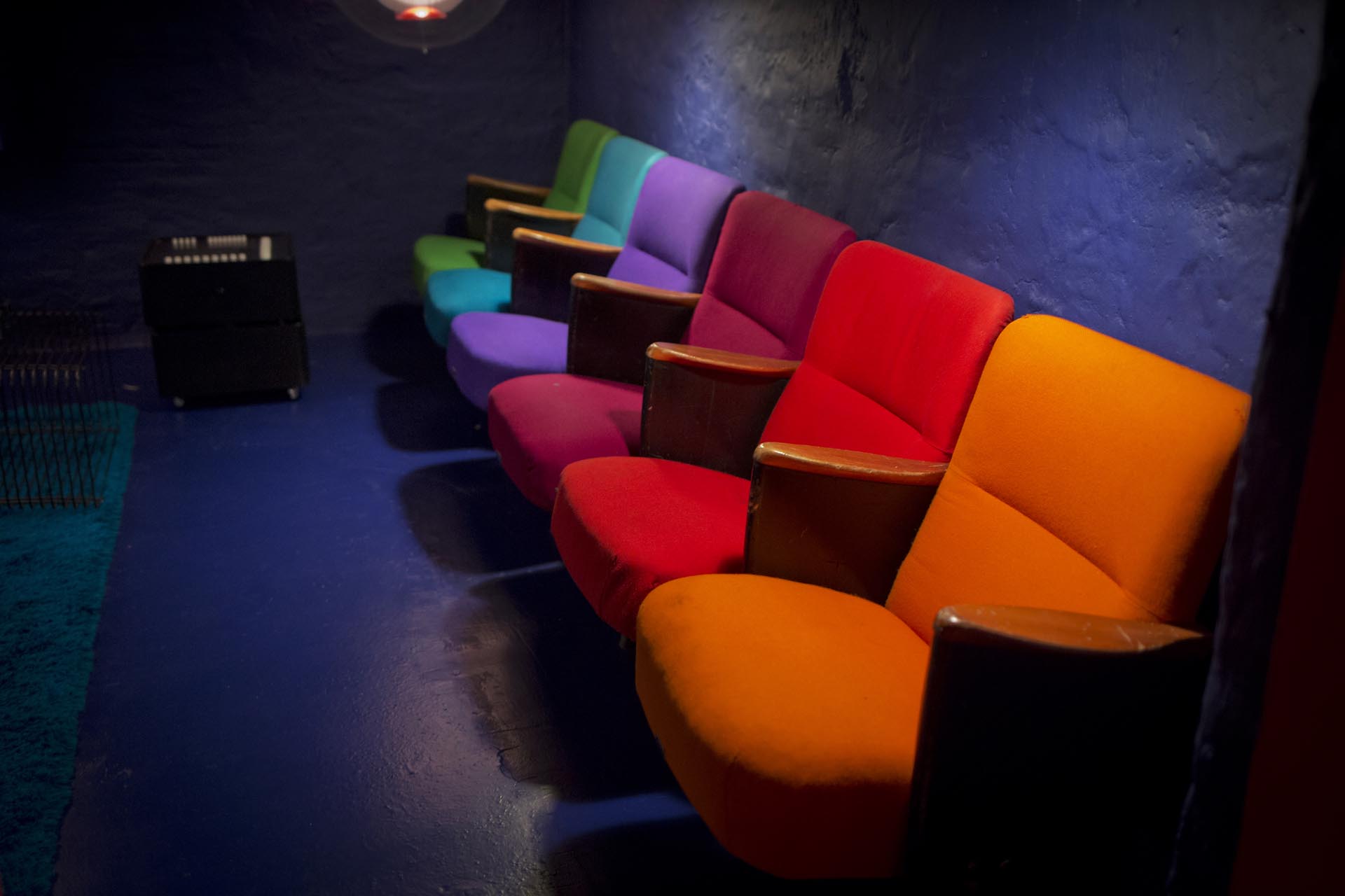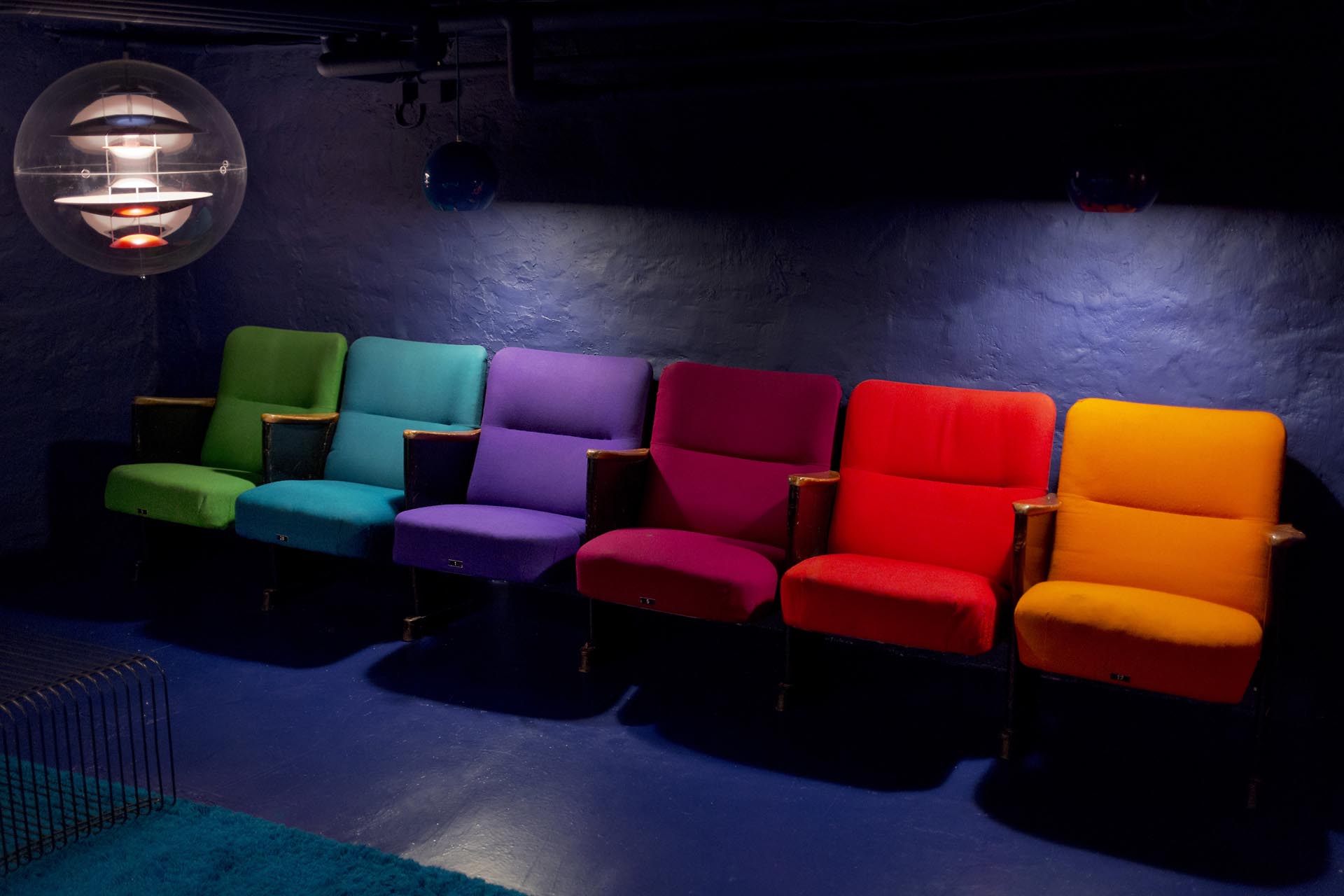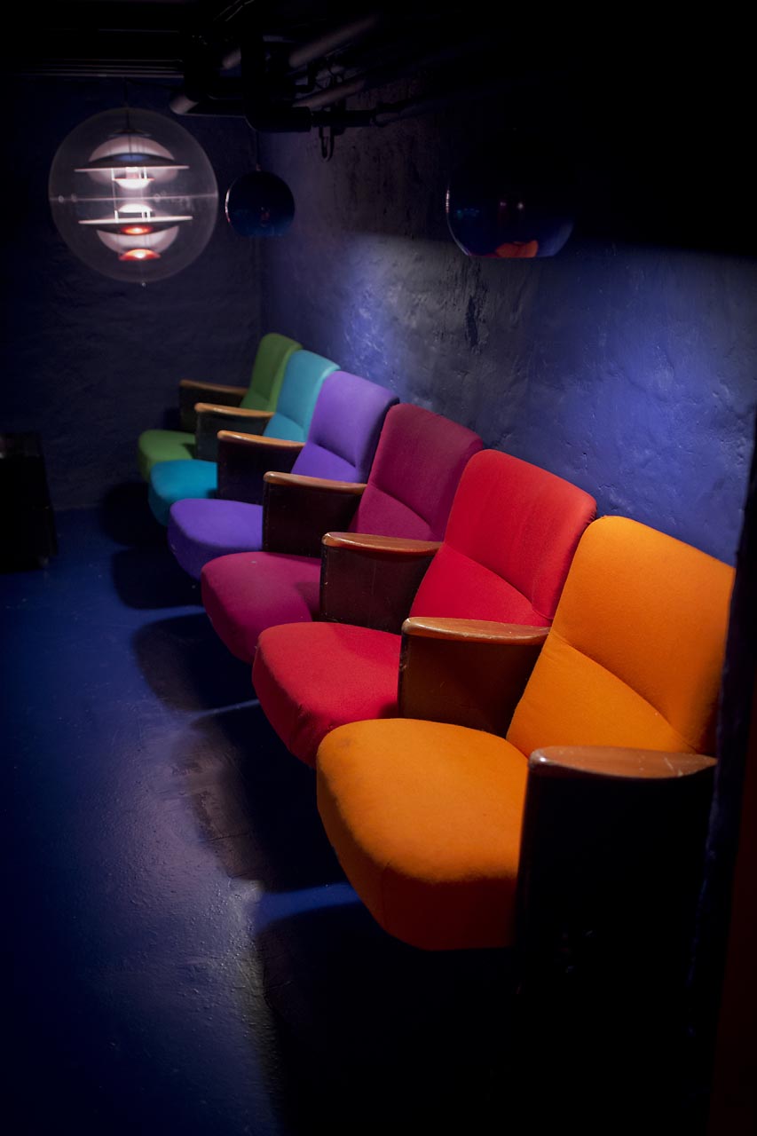 I did a little “cinema” at home with some of the Circus building seats that Verner Panton re-designed in 1984. He used these 6 colours for the furnishing of the seats.