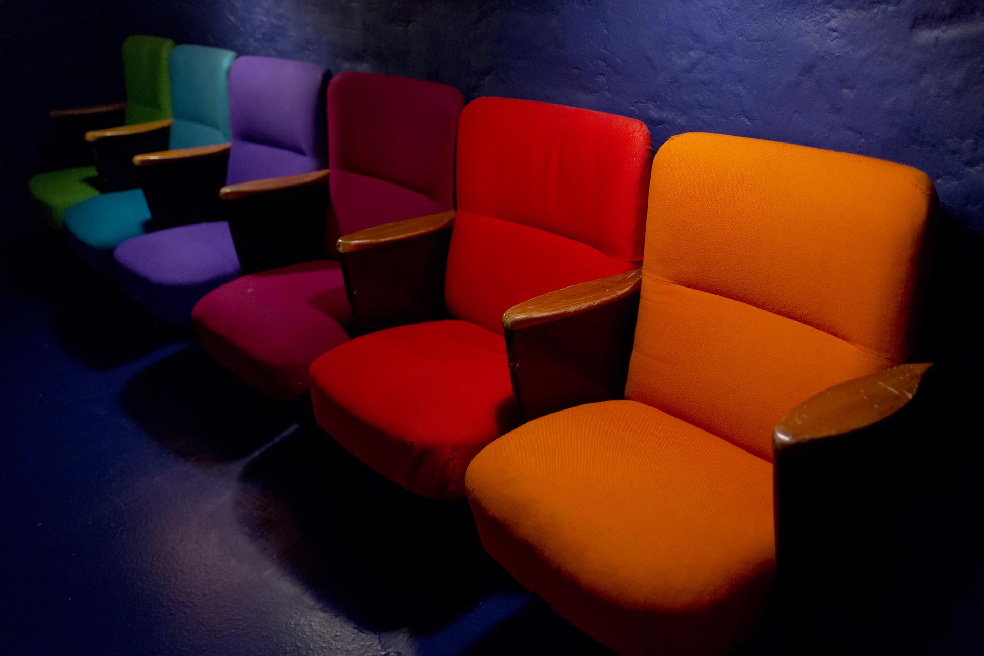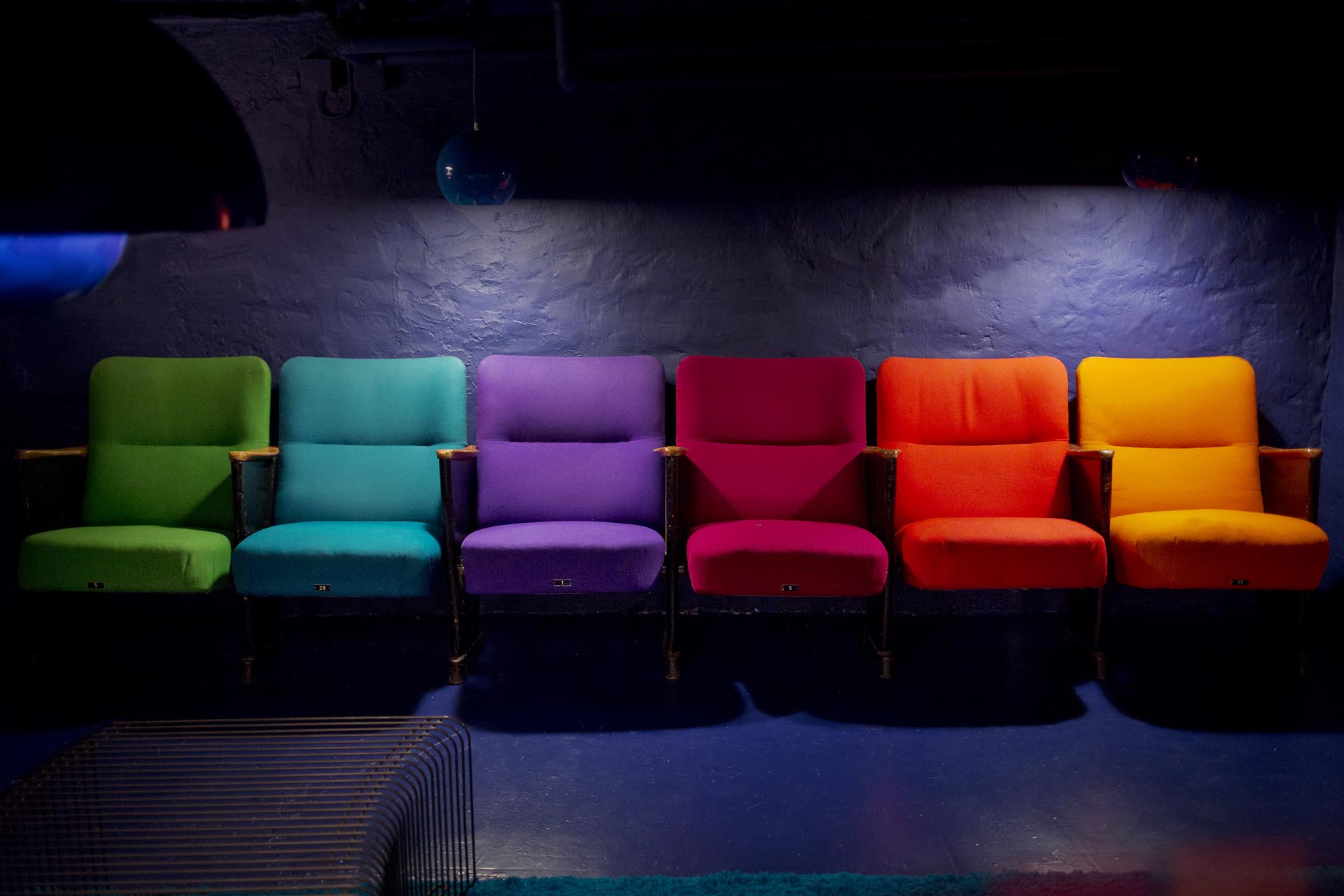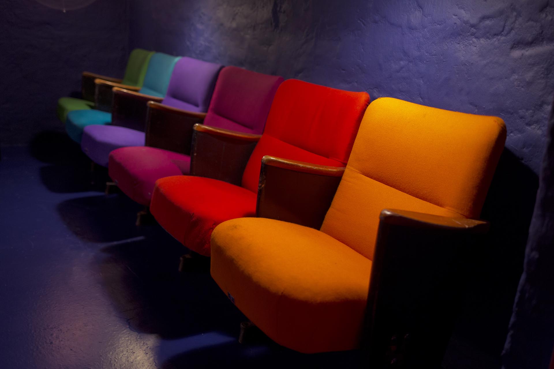 I did a little “cinema” at home with some of the Circus building seats that Verner Panton re-designed in 1984. He used these 6 colours for the furnishing of the seats.